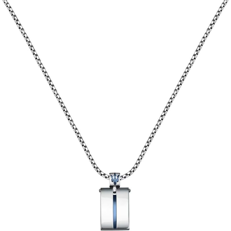 Marca: Maserati; Colección: Maserati Jewels; Código del Artículo: JM121ATK07; Tipo de producto: Collar; Género: Hombre; Material: Acero hipoalergénico; Color: Plata, Azul; Sujeto: Placa; Tamaño / Medida: 60 cm.