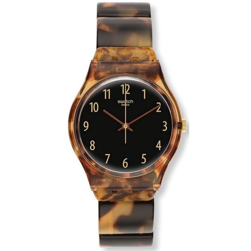 Marke: Swatch; Linie: Originals; Kollektion: Gent; Modell: Ecaille; Artikelcode: GC113B; Produkttyp: Uhr; Geschlecht: Frau; Funktionen: Nur Zeit; Uhrwerk: Quarz / Batterie; Gehäuseform: Runder; Gehäusematerial: Kunststoff / Harz; Gehäusefarbe: Braun; Gehäusedurchmesser Ø: 34 mm; Zifferblatt: Analog; Zifferblattfarbe: Schwarz; Bandmaterial: Kunststoff / Harz; Armbandfarbe: Braun; Wasserbeständigkeit: 30 Meter / 3 bar; Größe / Maßnahme: S.