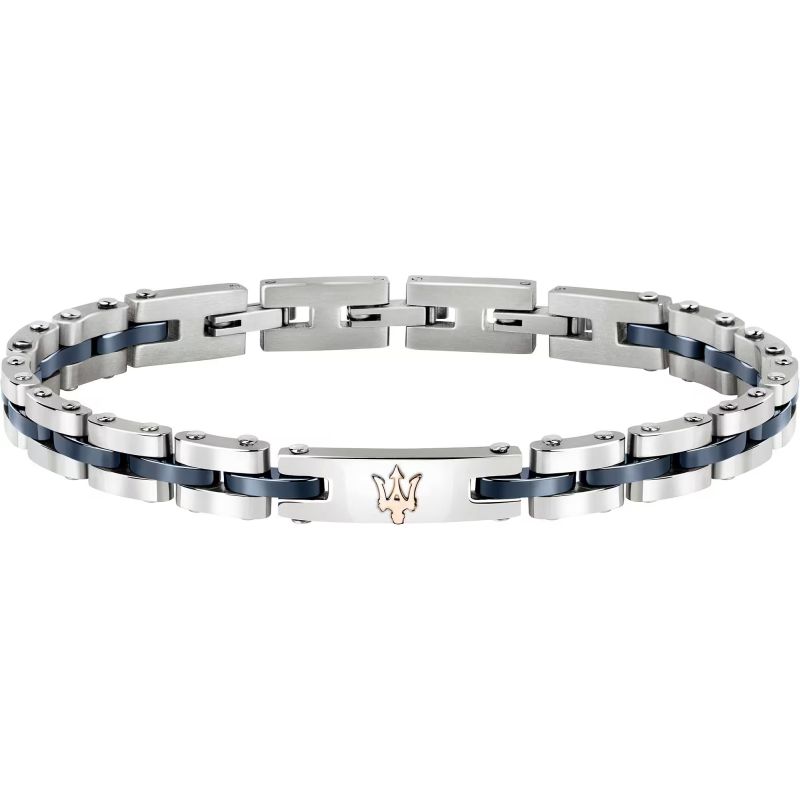 Brand: Maserati; Collection: Maserati Jewels; Article Code: JM220ASR08; Type of product: Bracelet; Gender: Man; Material: Hypoallergenic steel, Ceramic; Color: Silver, Blue; Size / Measure: 21 cm.