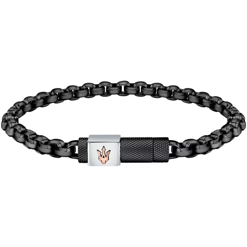 Brand: Maserati; Collection: Maserati Jewels; Article Code: JM223ATK26; Type of product: Bracelet; Gender: Man; Material: Hypoallergenic steel; Color: Black, Silver, Rose Gold; Size / Measure: 21,5 cm.
