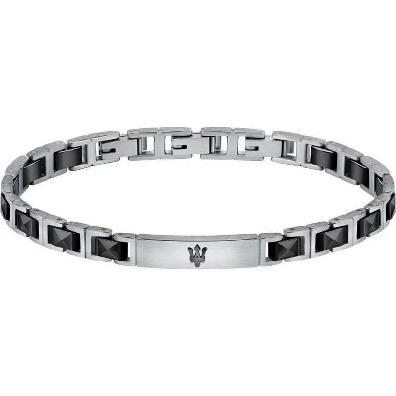 Brand: Maserati; Collection: Maserati Jewels; Article Code: JM420ATI06; Type of product: Bracelet; Gender: Man; Material: Hypoallergenic steel, Black ceramic; Color: Black, Silver; Subject: Plate; Size / Measure: 21 cm.
