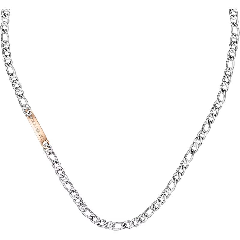 Brand: Maserati; Collection: Maserati Jewels; Article Code: JM221ATY01; Type of product: Necklace; Gender: Man; Material: Hypoallergenic steel, Diamond; Color: Silver, Rose Gold; Size / Measure: 50 cm.