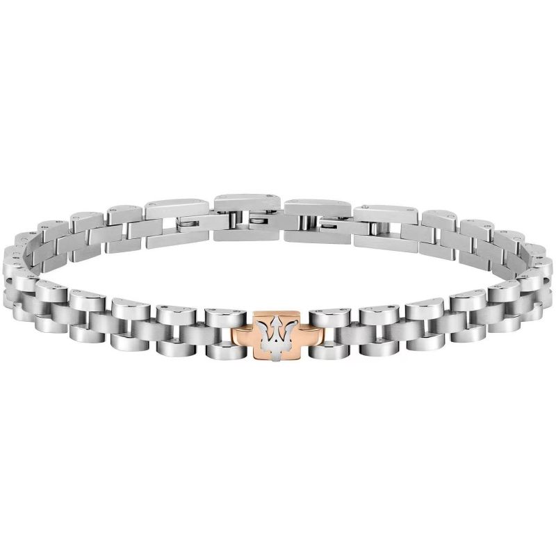 Marque: Maserati; Collection: Maserati Jewels; Code de l'Article: JM219AQH17; Type de produit: Bracelet; Genre: Homme; Matériau: Acier hypoallergénique; Couleur: Argent, Or Rose; Taille / Mesure: 21 cm.