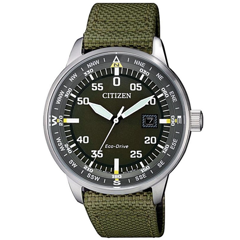 Acquista online Orologio Citizen BM7390-22X al miglior prezzo. Marca: Citizen; Collezione: OF Collection; Modello: Aviator; Codice Articolo: BM7390-22X; Tipologia Prodotto: Orologio; Genere: Uomo; Funzioni: Solo Tempo, Data; Tipo di Movimento: Eco-Drive; Materiale della Cassa: Acciaio Inossidabile; Colore della Cassa: Acciaio; Diametro della Cassa Ø: 42 mm; Tipo di Quadrante: Analogico; Colore del Quadrante: Verde; Materiale del Cinturino: Tessuto; Colore del Cinturino: Verde; Resistenza all'acqua: 100 metri / 10 bar. Orologio da Uomo Citizen Aviator Eco-Drive BM7390-22X è un articolo del marchio Citizen, referenza BM7390-22X, che trovi tra le tante proposte presenti nel catalogo Orologi Citizen. Sul nostro negozio di orologi online puoi trovare le collezioni Citizen in vendita a prezzi convenienti e con garanzia di qualità. Sarai soddisfatto o rimborsato...!!! Consulta ora le Specifiche per scoprire i dettagli di questo articolo. Contattaci subito per avere ulteriori chiarimenti. Il prodotto è autentico, nuovo di fabbrica con etichetta e dotato di manuale di istruzioni e packaging della casa produttrice.| Informazioni sull'orologio | |