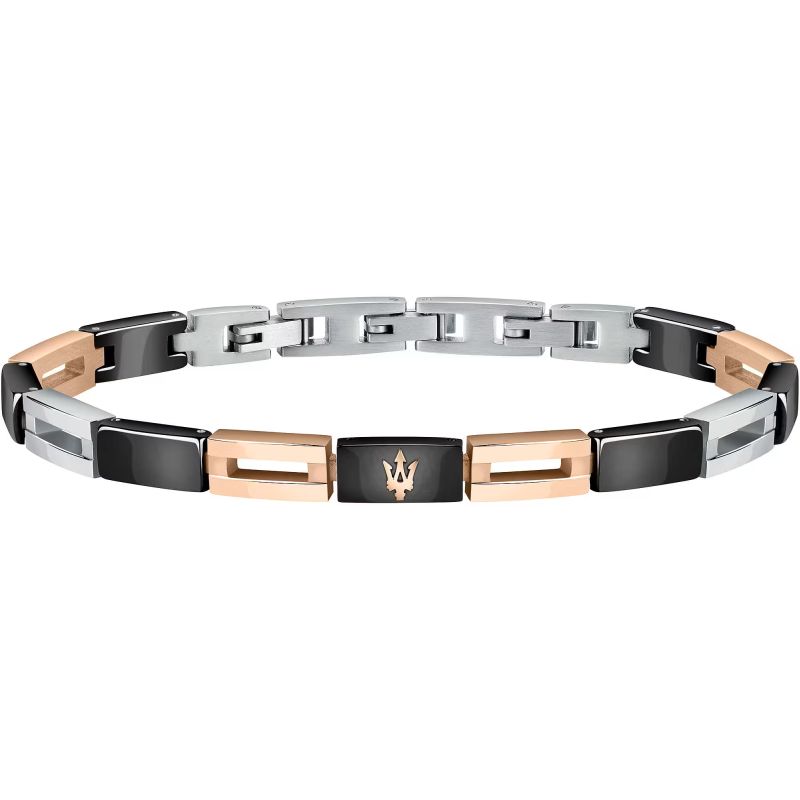 Brand: Maserati; Collection: Maserati Jewels; Article Code: JM421ATZ09; Type of product: Bracelet; Gender: Man; Material: Hypoallergenic steel, Black ceramic; Color: Black, Silver, Rose Gold; Size / Measure: 22 cm.